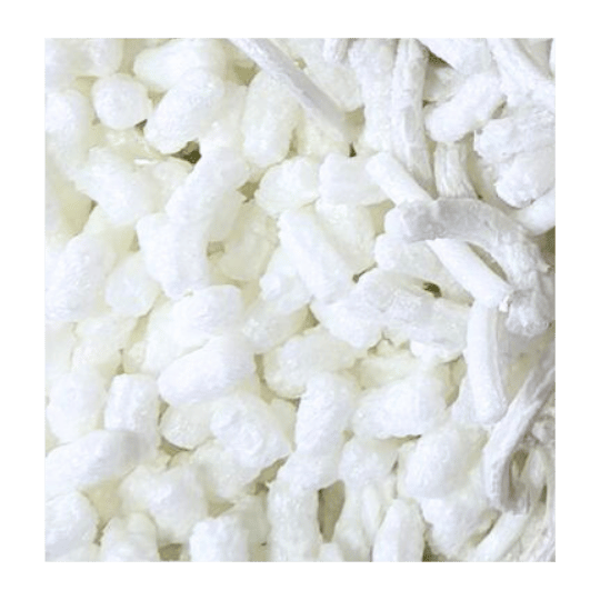 Este cunoscut sub mai multe denumiri ca si: spumă pentru umplerea golurilor, cipsuri/chips, spumă biodegradabilă, Green-Fill / Loose Fill, Ambalaj bio, spumă nepoluantă pentru umplerea golurilor, Ambalaj nepoluant. Se aseamana foarte mult cu produsul Fulgi Polistiren Verzi insa diferenta majora fata de acestia este ca ,,Fulgi Biodegradabili ” sunt 100% biodegradabili, fabricati din amidon de porumb si se distrug foarte repede in contactul cu apa.